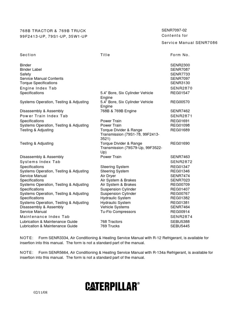 Service Manuals Parts Manuals Maintenance Manuals Cat