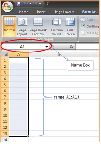 Enter A Named Cell Or Range Using The Name Box Cells Name