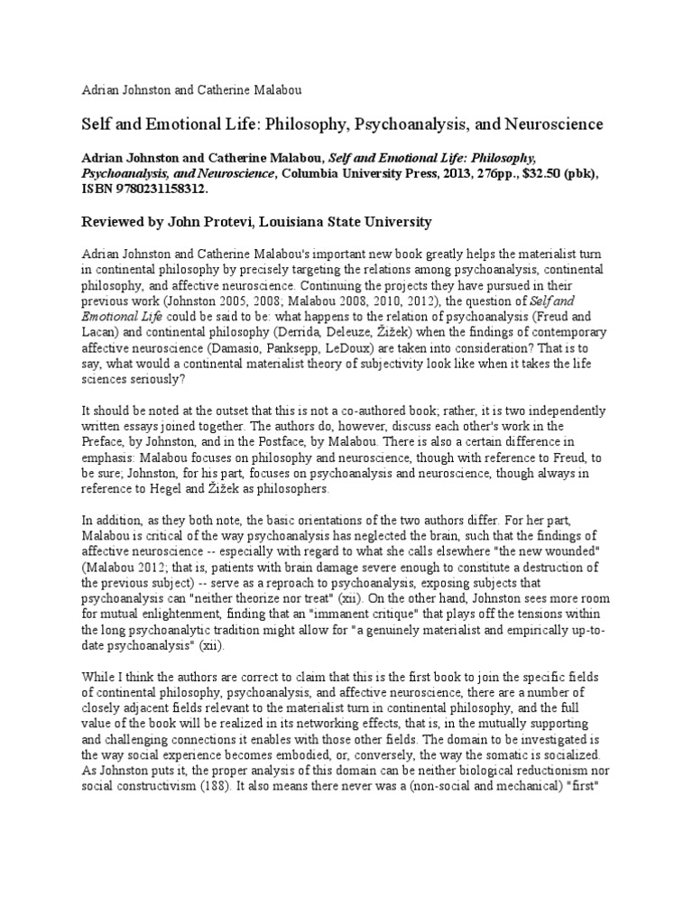 Adrian Johnston And Catherine Malabou Essentialism Psychoanalysis