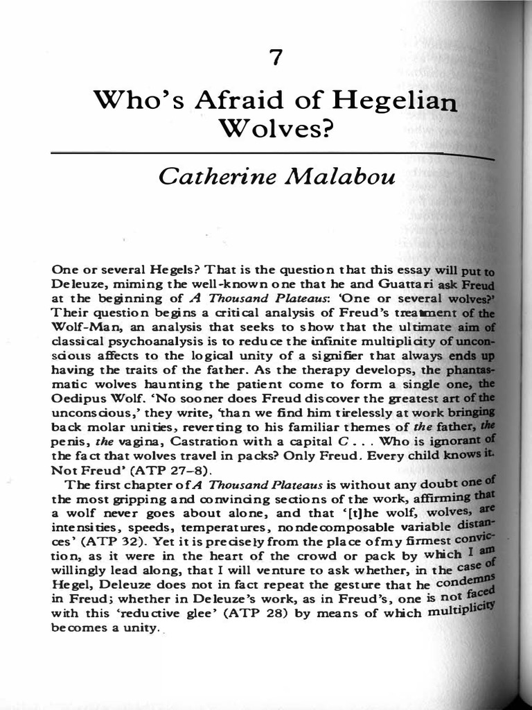 Catherine Malabou Who Is Afraid Of Hegelian Wolves Georg